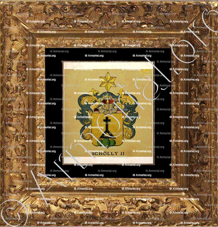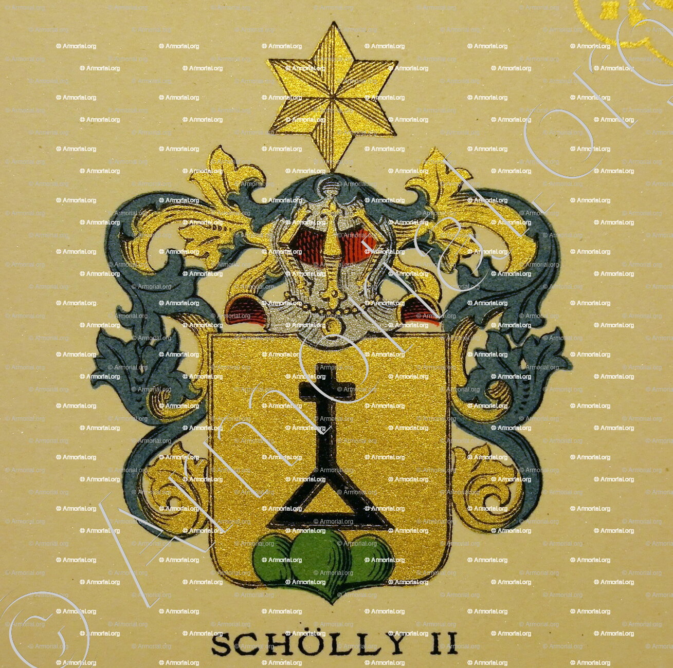 SCHÖLLY est un nom qui s’accompagne d’un blason. Origine :Wappenbuch der Stadt Basel . B.Meyer Knaus 1880, Schweiz