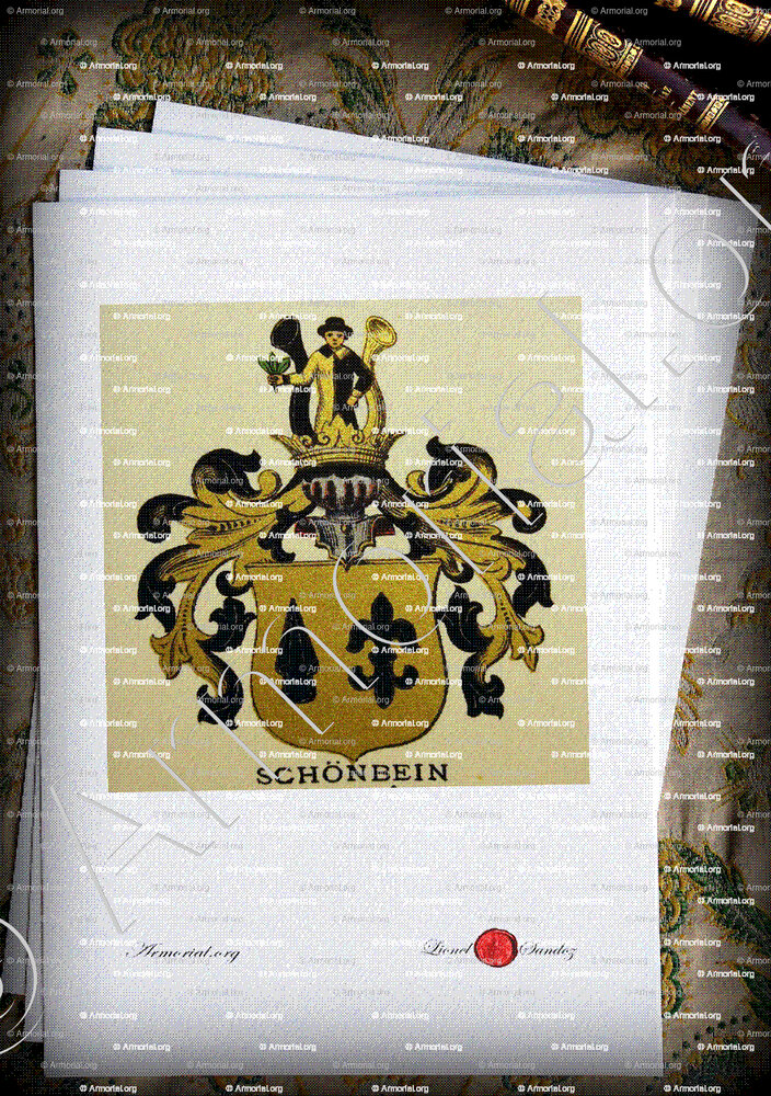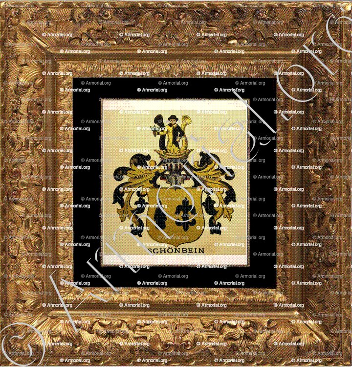 SCHÖNBEIN est un nom qui s’accompagne d’un blason. Origine :Wappenbuch der Stadt Basel . B.Meyer Knaus 1880, Schweiz