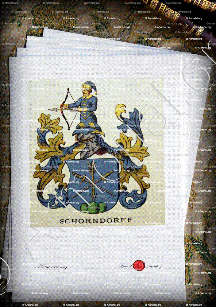 SCHORNDORFF est un nom qui s’accompagne d’un blason. Origine :Wappenbuch der Stadt Basel . B.Meyer Knaus 1880, Schweiz