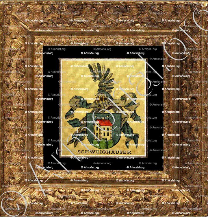 SCHWEIGHAUSER est un nom qui s’accompagne d’un blason. Origine :Wappenbuch der Stadt Basel . B.Meyer Knaus 1880, Schweiz