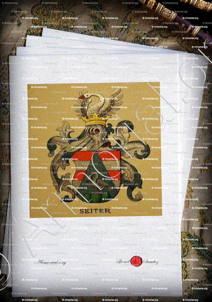 SEITER est un nom qui s’accompagne d’un blason. Origine :Wappenbuch der Stadt Basel . B.Meyer Knaus 1880, Schweiz