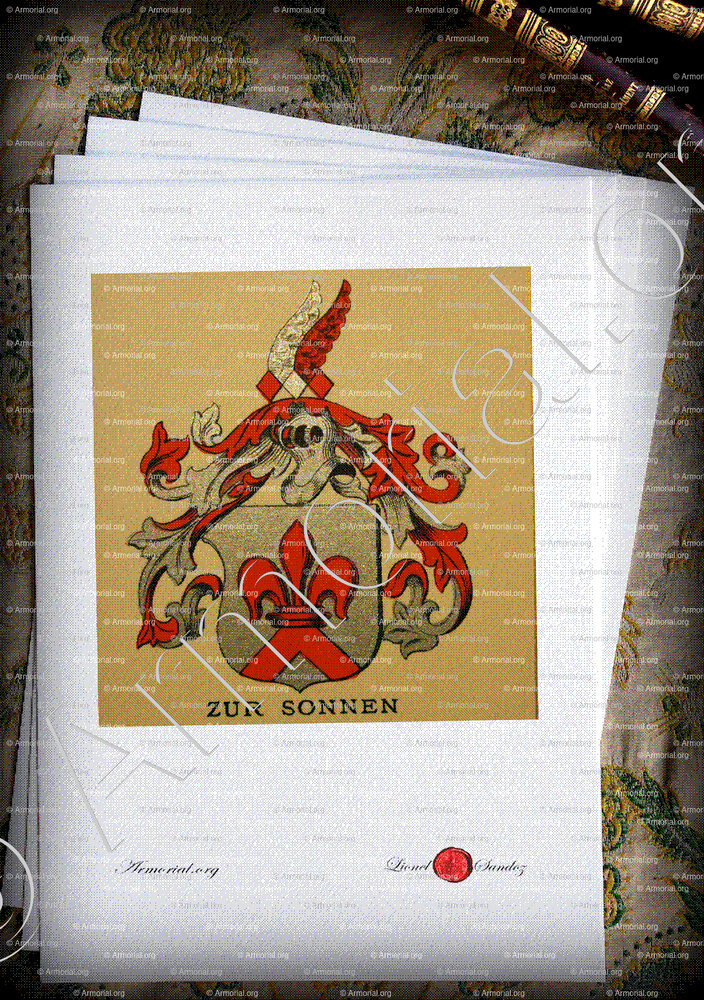 SONNEN est un nom qui s’accompagne d’un blason. Origine :Wappenbuch der Stadt Basel . B.Meyer Knaus 1880, Schweiz