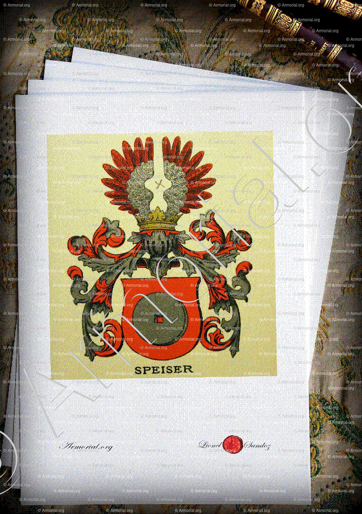 SPEISER est un nom qui s’accompagne d’un blason. Origine :Wappenbuch der Stadt Basel . B.Meyer Knaus 1880, Schweiz