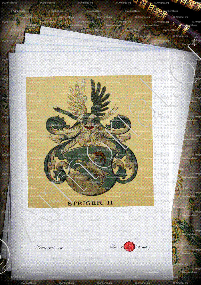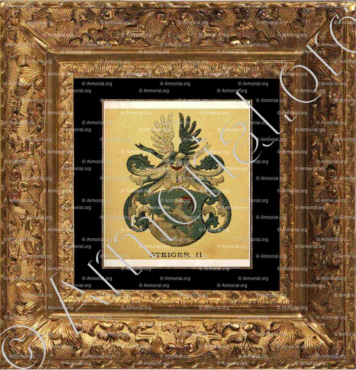STEIGER est un nom qui s’accompagne d’un blason. Origine :Wappenbuch der Stadt Basel . B.Meyer Knaus 1880, Schweiz