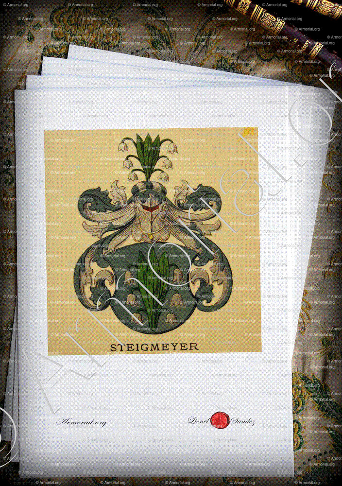 STEIGMEYER est un nom qui s’accompagne d’un blason. Origine :Wappenbuch der Stadt Basel . B.Meyer Knaus 1880, Schweiz