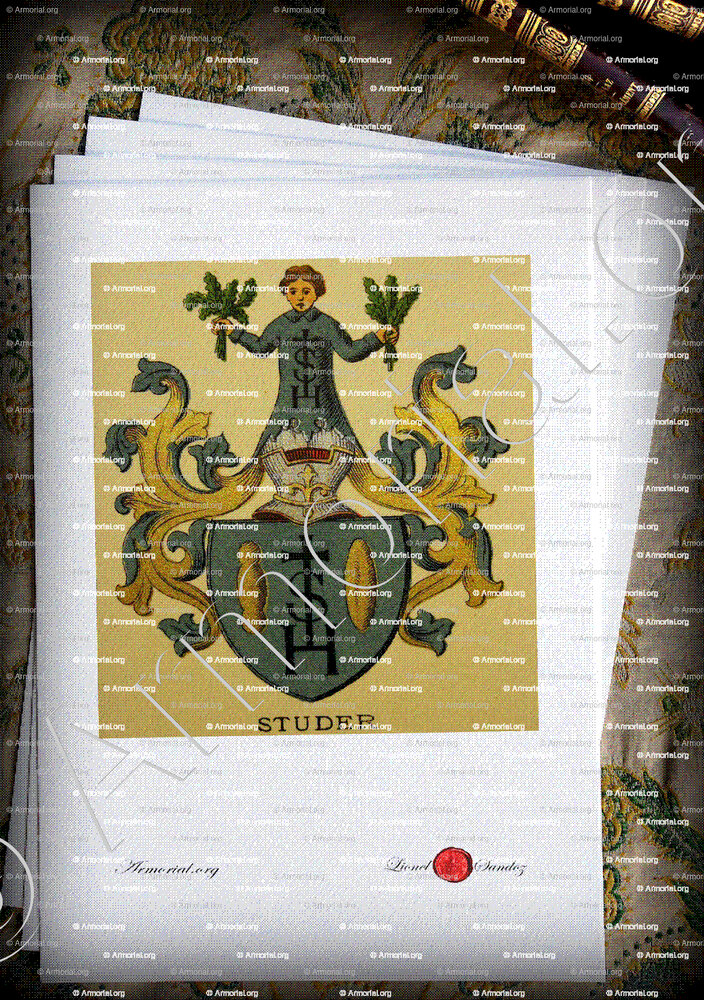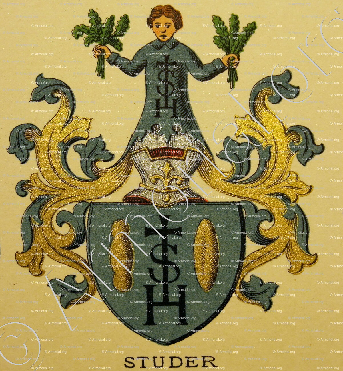 STUDER est un nom qui s’accompagne d’un blason. Origine :Wappenbuch der Stadt Basel . B.Meyer Knaus 1880, Schweiz