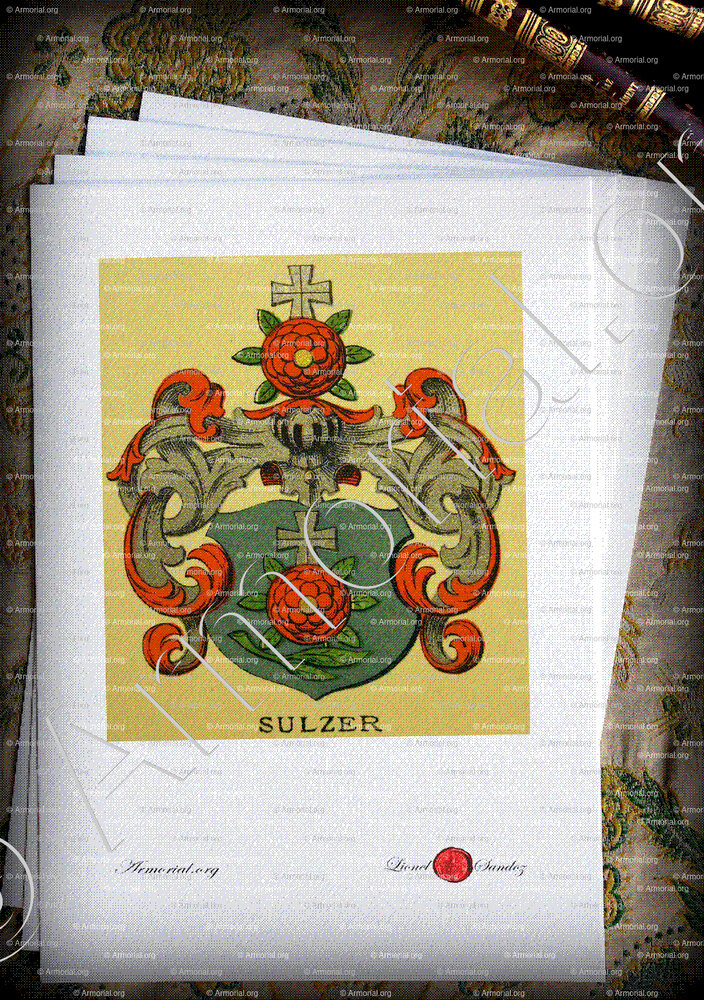 SULZER est un nom qui s’accompagne d’un blason. Origine :Wappenbuch der Stadt Basel . B.Meyer Knaus 1880, Schweiz