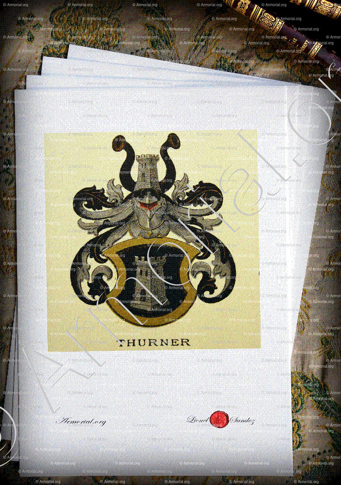 THURNER est un nom qui s’accompagne d’un blason. Origine :Wappenbuch der Stadt Basel . B.Meyer Knaus 1880, Schweiz
