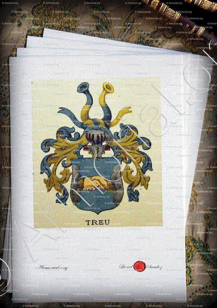 TREU est un nom qui s’accompagne d’un blason. Origine :Wappenbuch der Stadt Basel . B.Meyer Knaus 1880, Schweiz