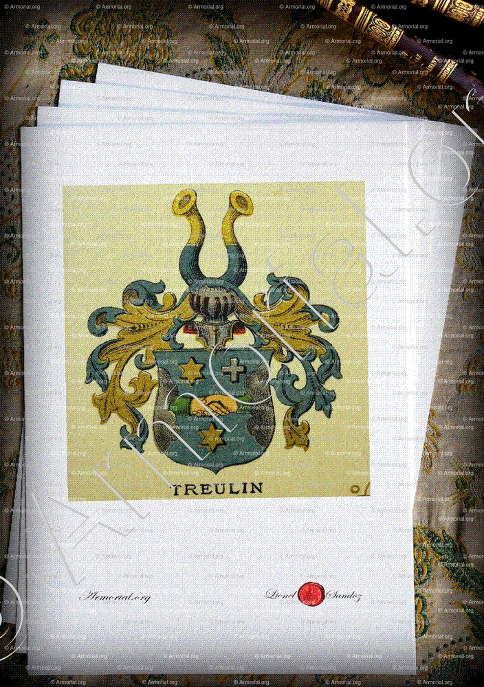 TREULIN est un nom qui s’accompagne d’un blason. Origine :Wappenbuch der Stadt Basel . B.Meyer Knaus 1880, Schweiz