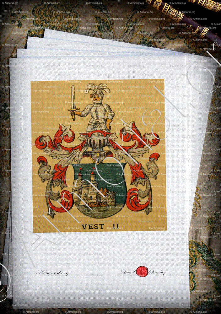 VEST est un nom qui s’accompagne d’un blason. Origine :Wappenbuch der Stadt Basel . B.Meyer Knaus 1880, Schweiz