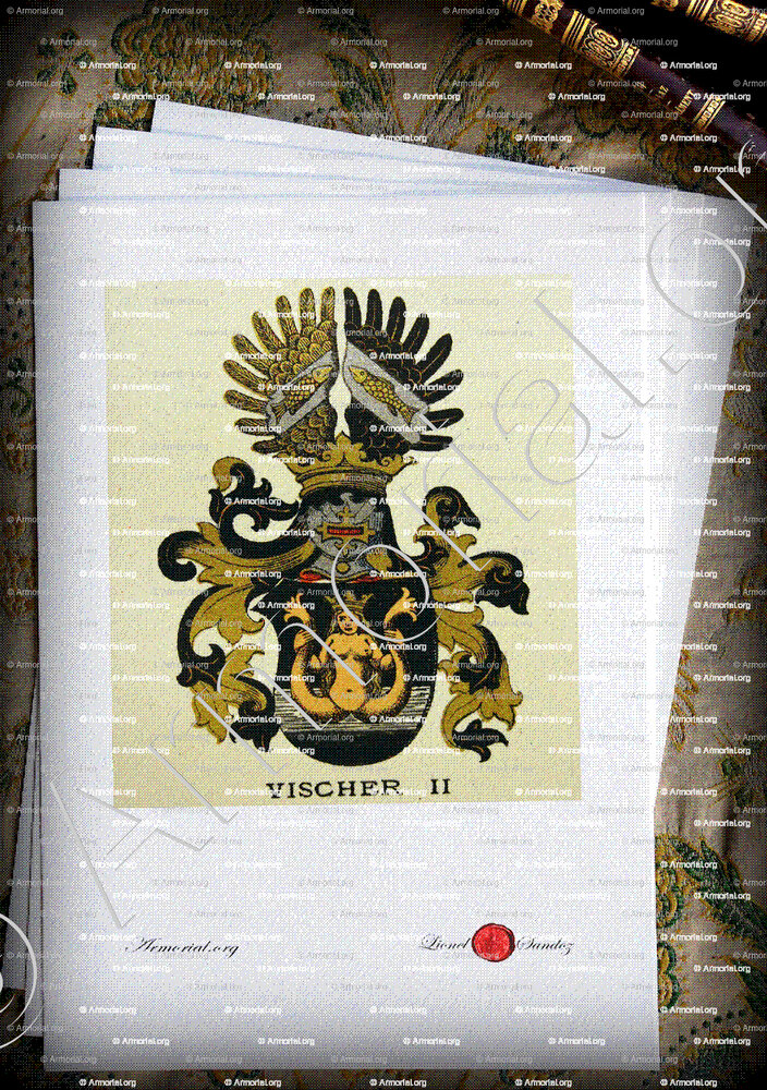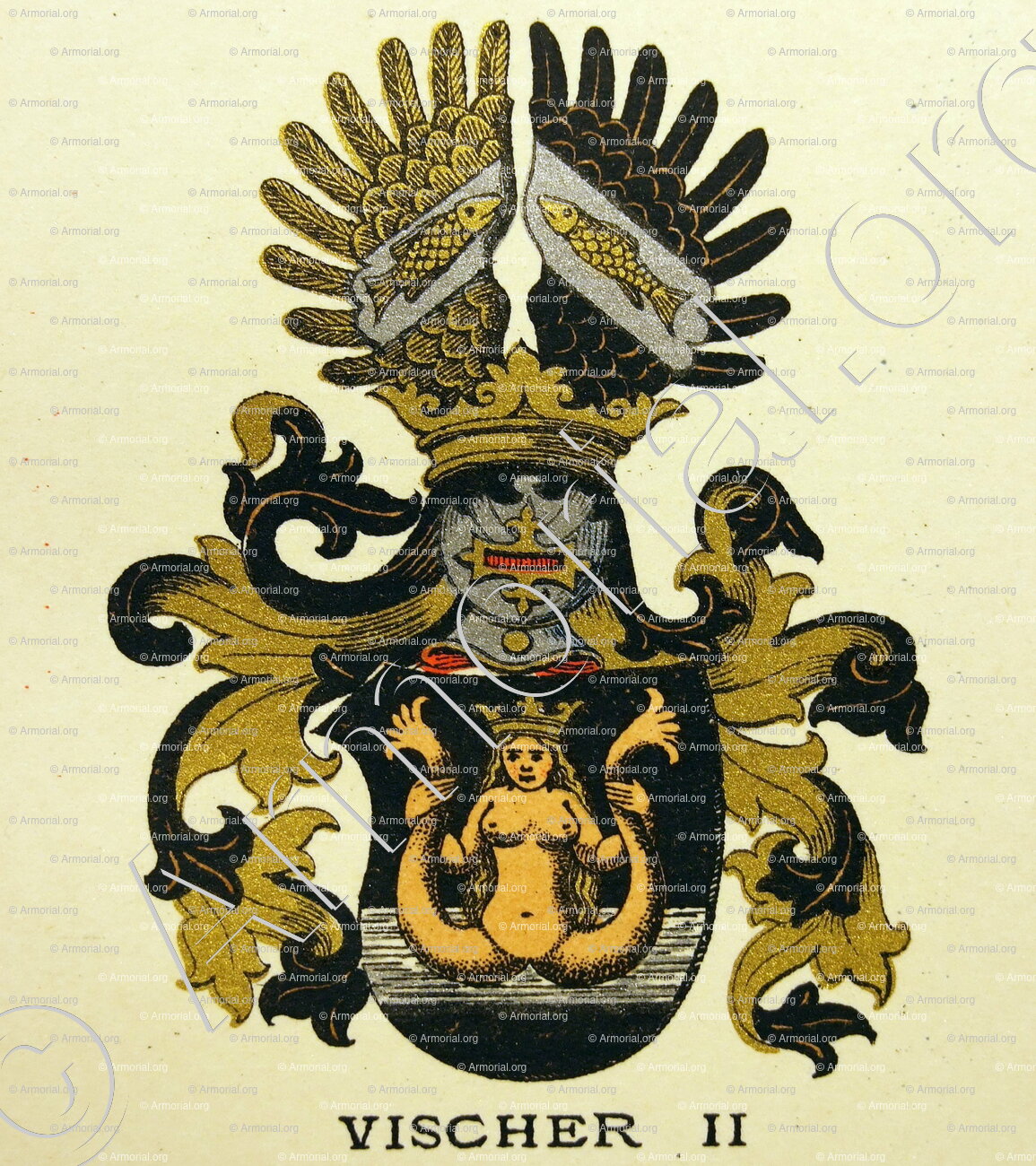VISCHER est un nom qui s’accompagne d’un blason. Origine :Wappenbuch der Stadt Basel . B.Meyer Knaus 1880, Schweiz