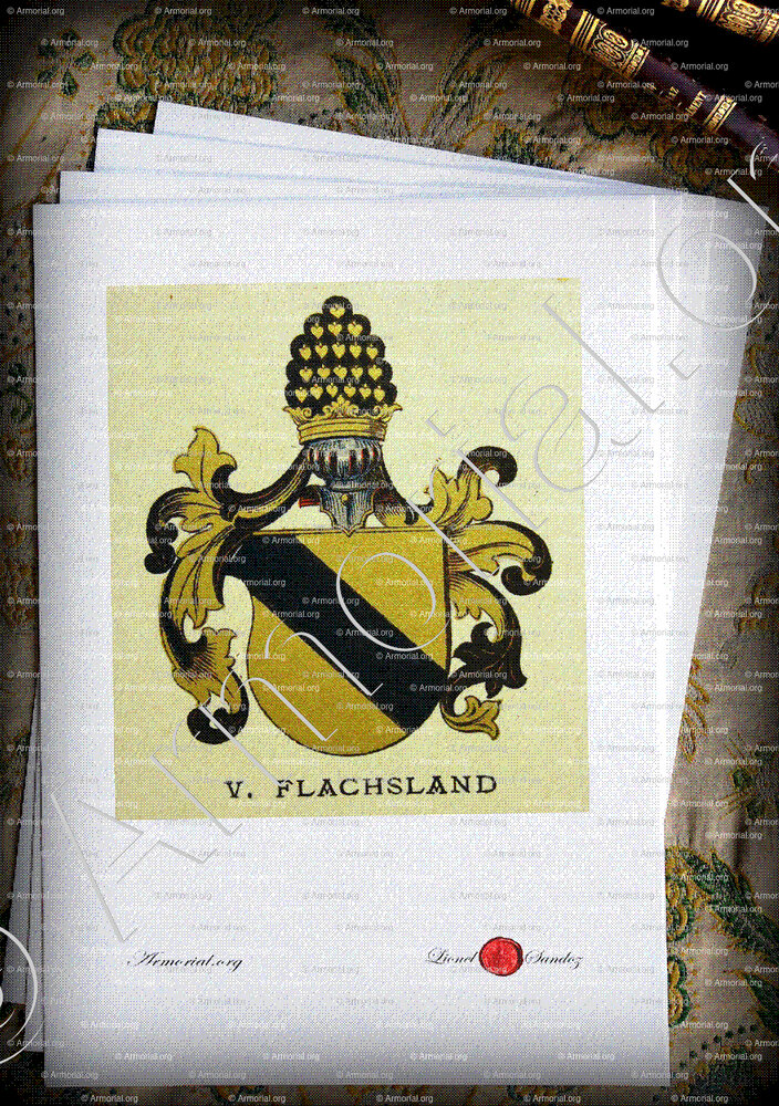 von FLACHSLAND est un nom qui s’accompagne d’un blason. Origine :Wappenbuch der Stadt Basel . B.Meyer Knaus 1880, Schweiz