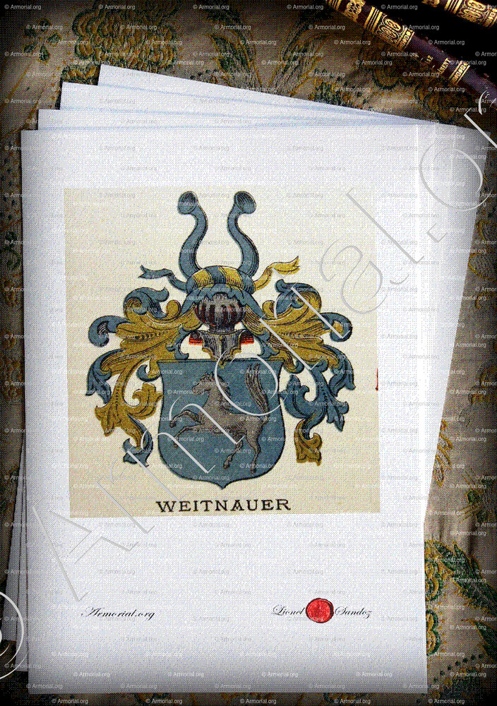 WEITNAUER est un nom qui s’accompagne d’un blason. Origine :Wappenbuch der Stadt Basel . B.Meyer Knaus 1880, Schweiz