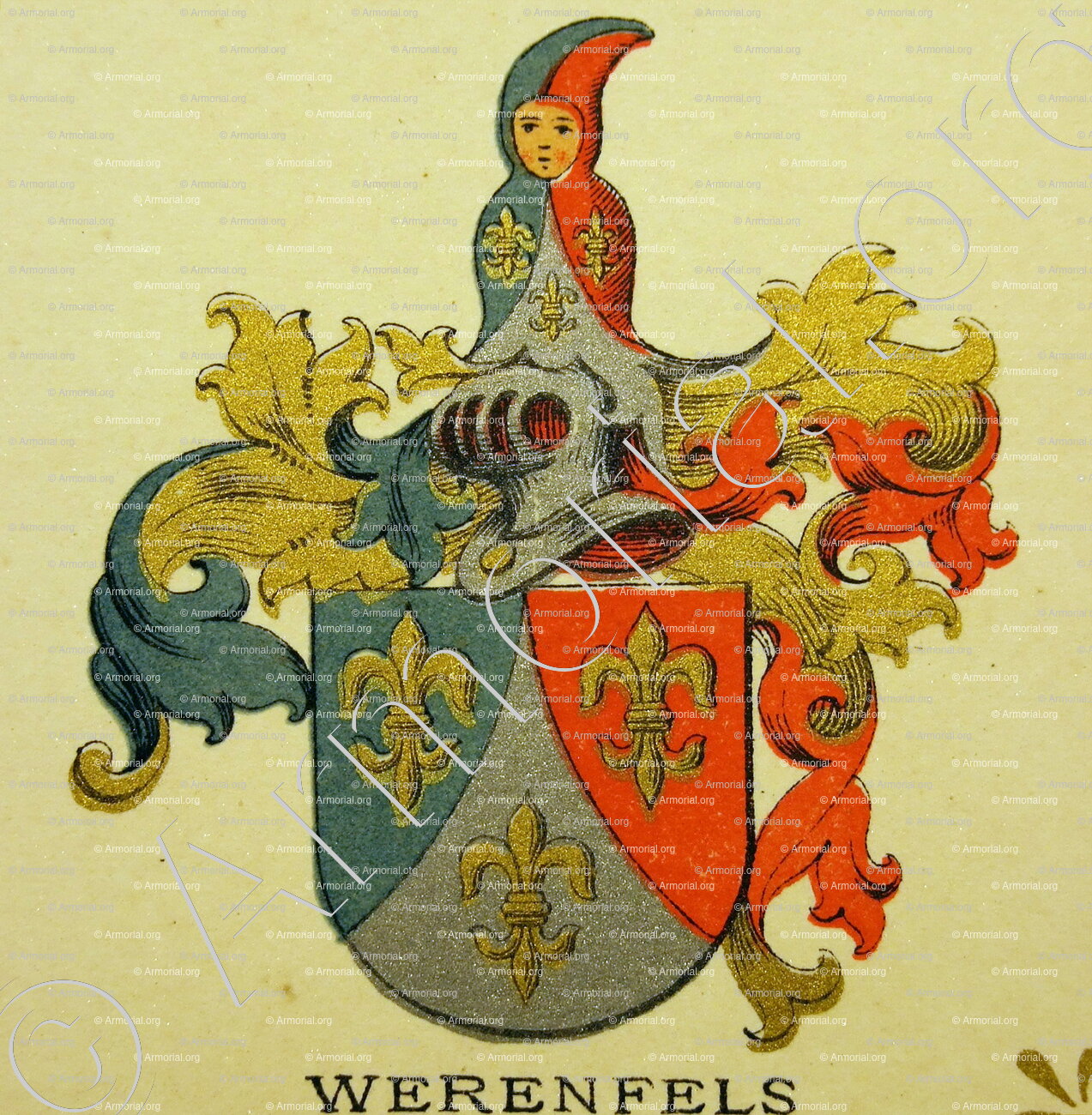 WERENFELS est un nom qui s’accompagne d’un blason. Origine :Wappenbuch der Stadt Basel . B.Meyer Knaus 1880, Schweiz