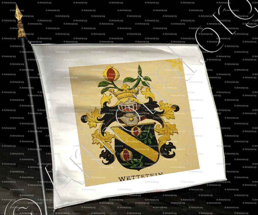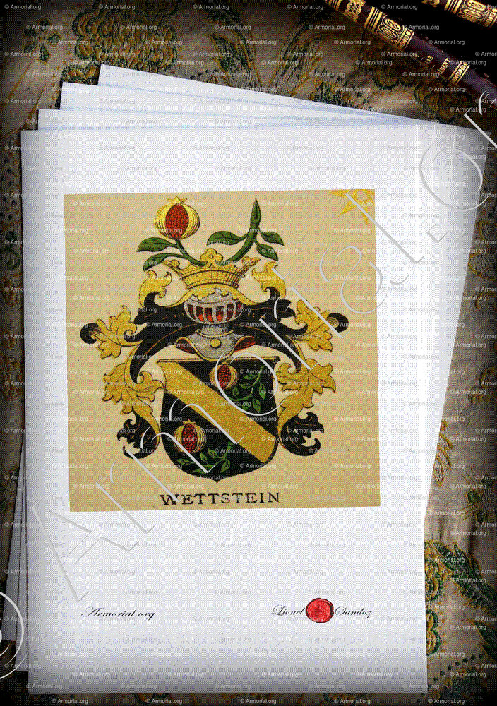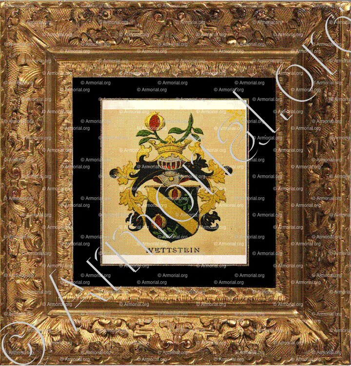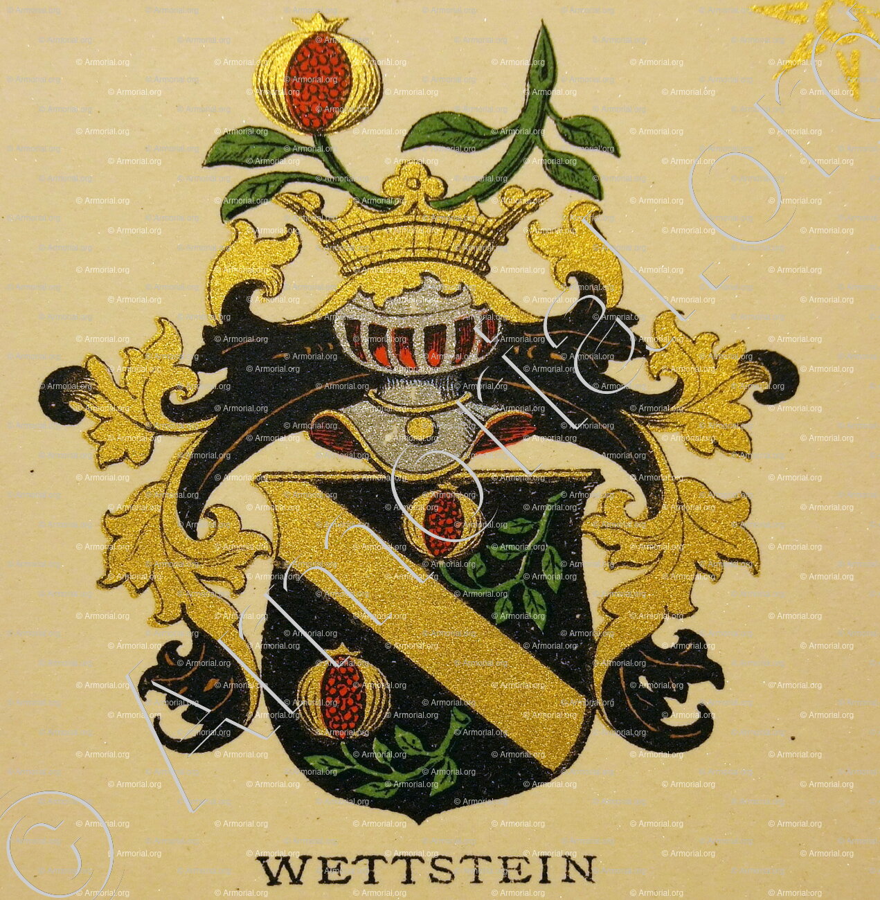 WETTSTEIN est un nom qui s’accompagne d’un blason. Origine :Wappenbuch der Stadt Basel . B.Meyer Knaus 1880, Schweiz