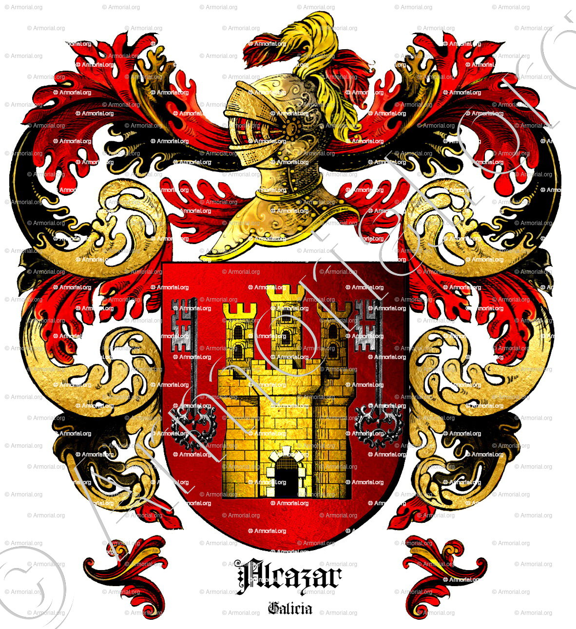 ALCAZAR est un nom qui s’accompagne d’un blason. Origine :Galicia, España (ii)