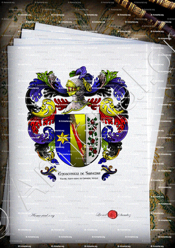 AMUSCOTEGUI de SAAVEDRA est un nom qui s’accompagne d’un blason. Origine :Nuevo Reino de Granada, Sevilla, España (ii)