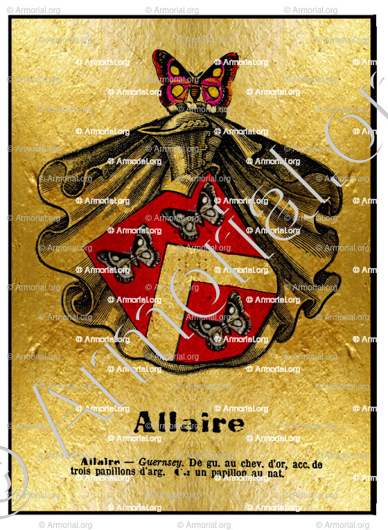 Origine du blason " ALLAIRE " : " Guernsey (Exposition L.S. Jemmapes, Mairie du Xe arr. Paris, 1988). England"