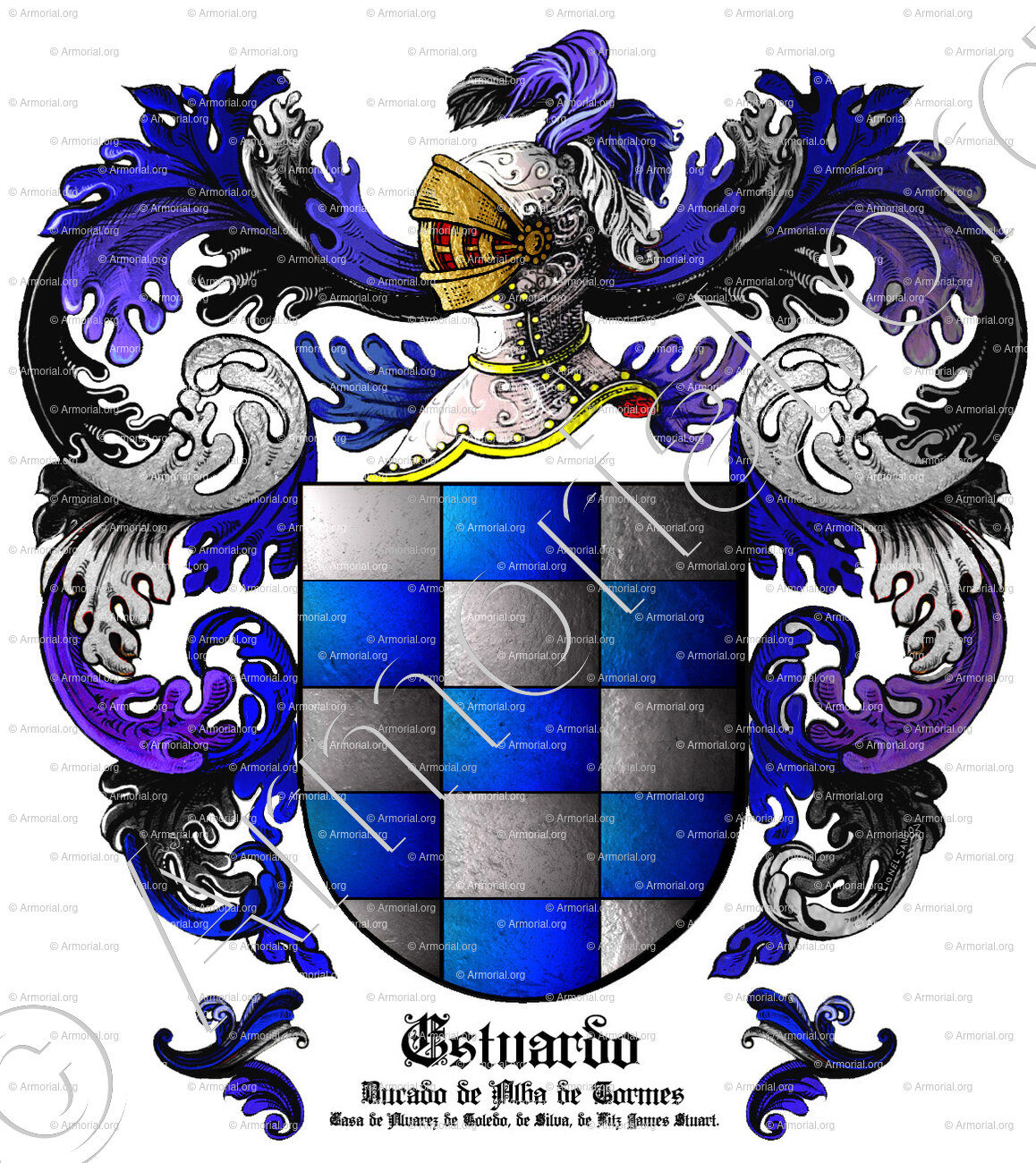 Origine du blason " ESTUARDO " : " 1430 Ducado de Alba de Tormes. Casa de Alvarez de Toledo, de Silva, de Fitz James Stuart (es decir Estuardo), España (iii) "