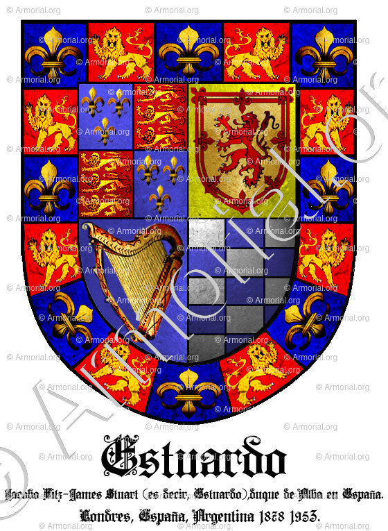 Origine du blason " ESTUARDO " : " 1878 1953 Casa de Fitz James Stuart y Silva, es decir Estuardo., España Argentina Londres (i) "