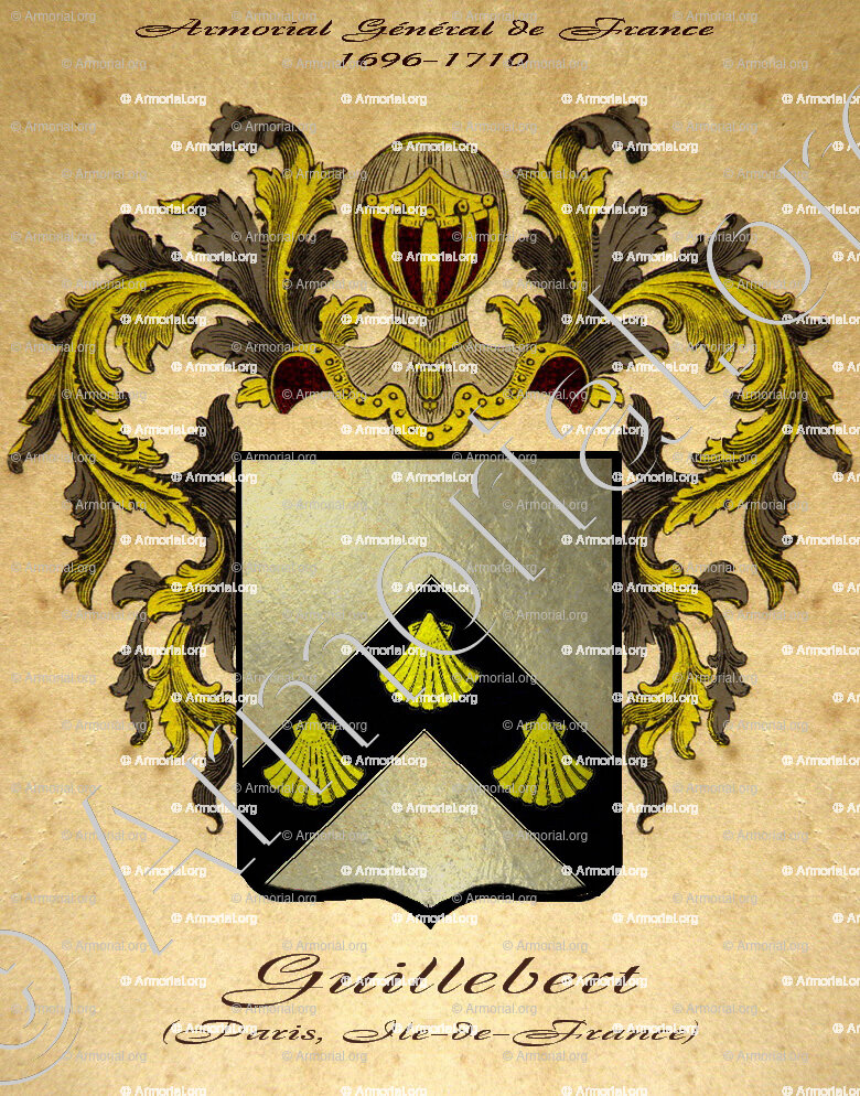 Origine du blason " GUILLEBERT " : " Ile de France 1696, France (i) "