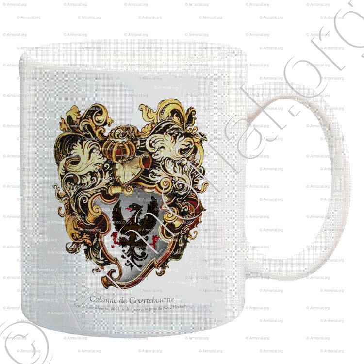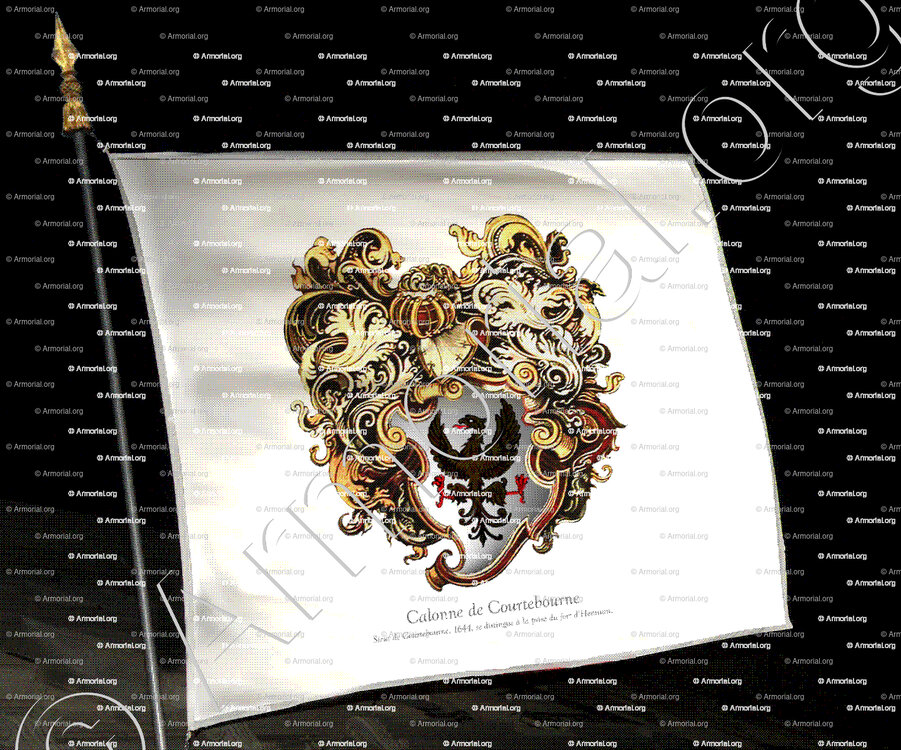 Origine du blason " CALONNE de COURTEBOURNE " : " Sieur de Courtebourne, 1644, se distingue à la prise du fort d'Hennuin., France "
