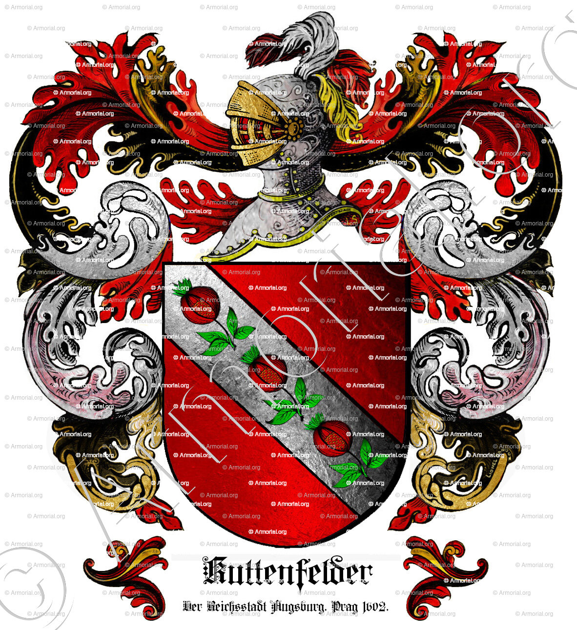 Origine du blason " KUTTENFELDER " : " Der Reichsstadt Augsburg. Prag 1602., Deutschland (ii) "