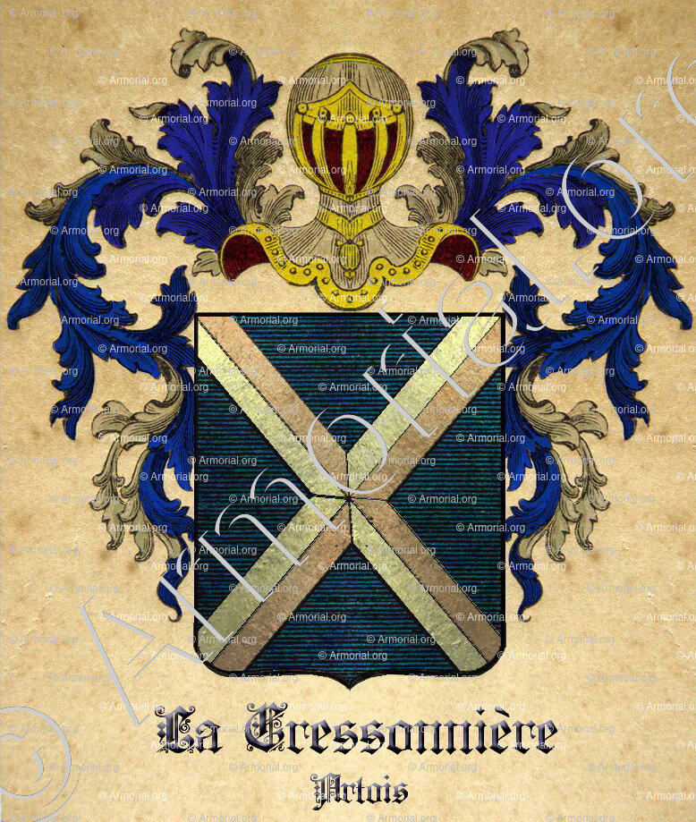 Origine du blason " LA CRESSONNIERE " : " Artois, France. "