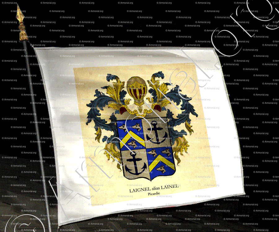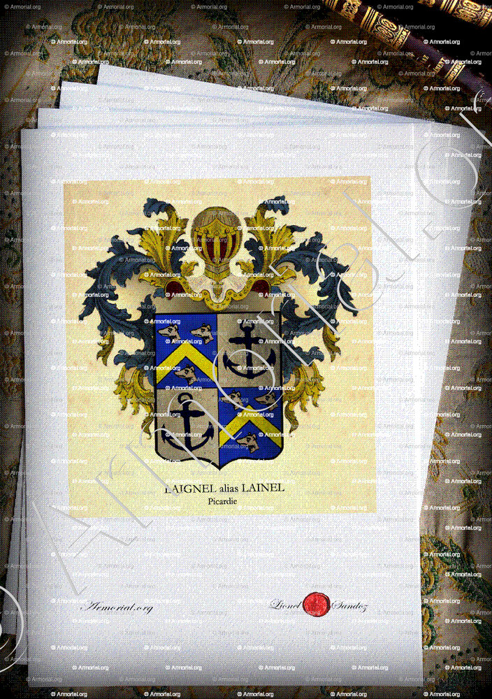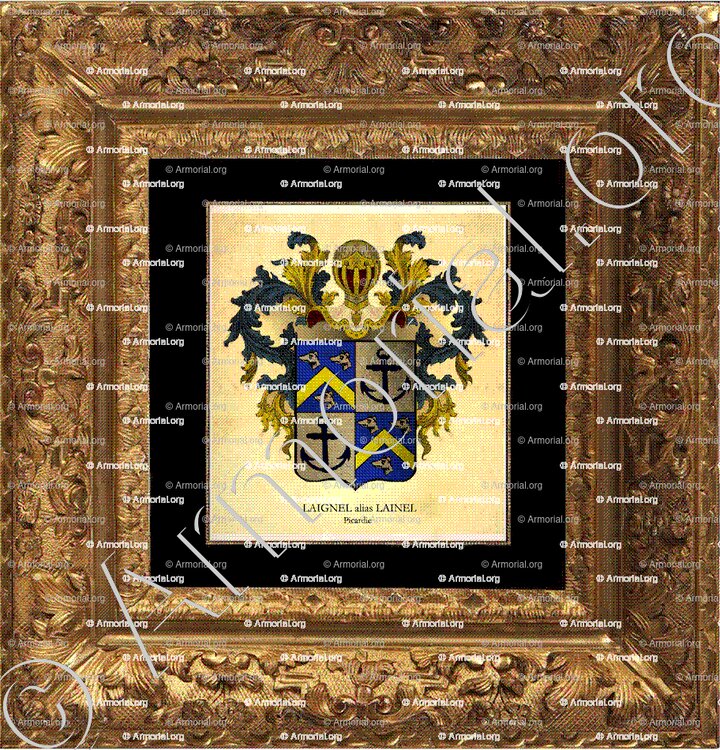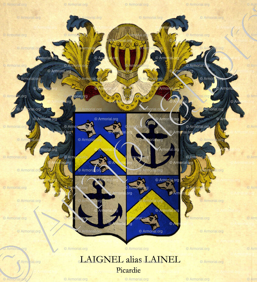 Origine du blason " LAIGNEL alias LAINEL " : " Picardie, France (i) "