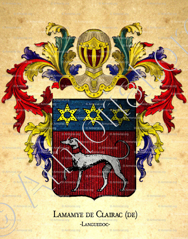 Origine du blason " LAMAMYE de CLAIRAC " : " Chevalier, Languedoc, France (ii) "