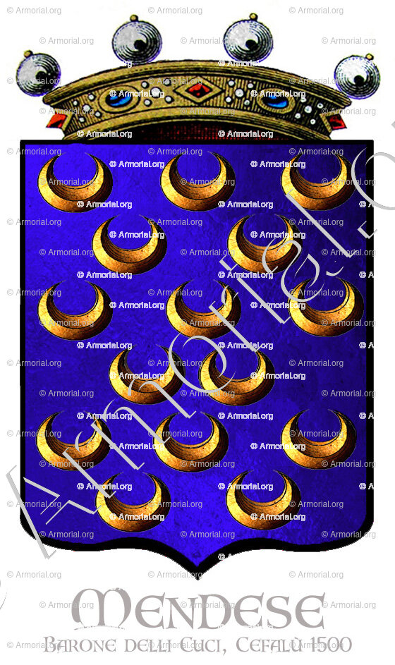 Origine du blason " MENDESE " : " Sicilia. Barone delli Cuci, Cefalù 1500. (Coronna), Italia (i) "
