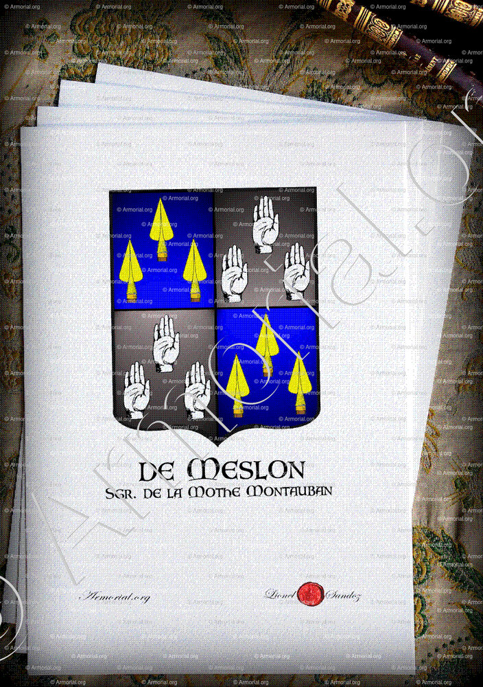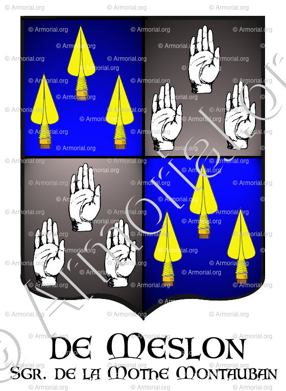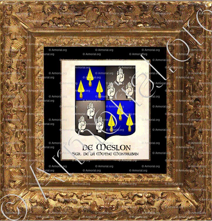 Origine du blason " MESLON " : " Sgr. de la Mothe Montauban, Guyenne, France "