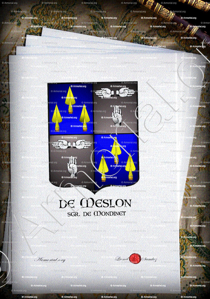 Origine du blason " MESLON " : " Sgr. de Mondinet, Guyenne, France "