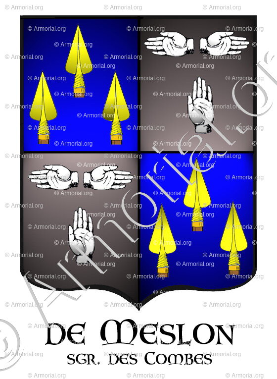 Origine du blason " MESLON " : " Sgr. des Combes, Guyenne, France "