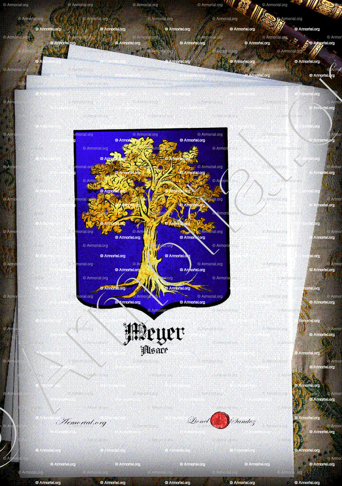 Origine du blason " MEYER " : " Alsace, France (i) "