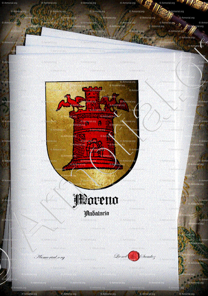 MORENO est un nom qui s’accompagne d’un blason.