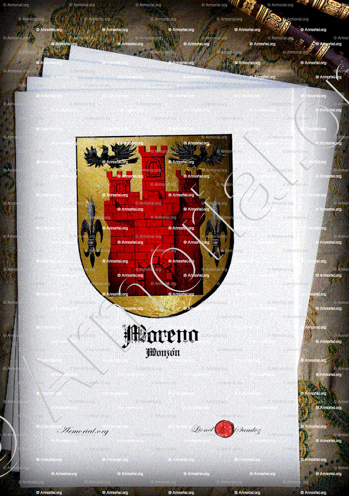 Origine du blason " MORENO " : " Monzon, España (i) "