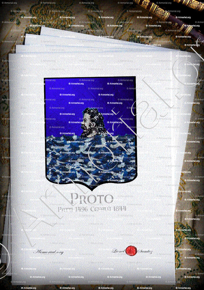 Origine du blason " PROTO " : " Sicilia. Patti 1496, Cefalù 1844, Italia (i) "
