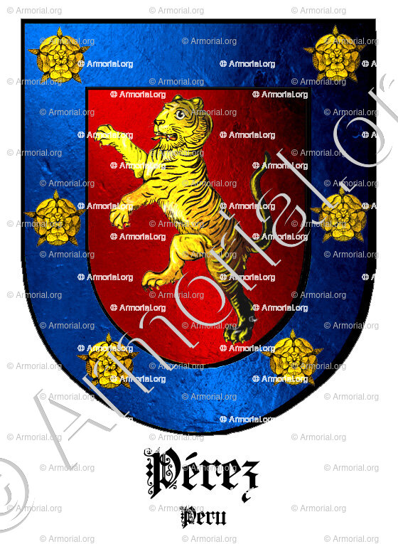 Origine du blason " PEREZ " : " Peru, España (i) "