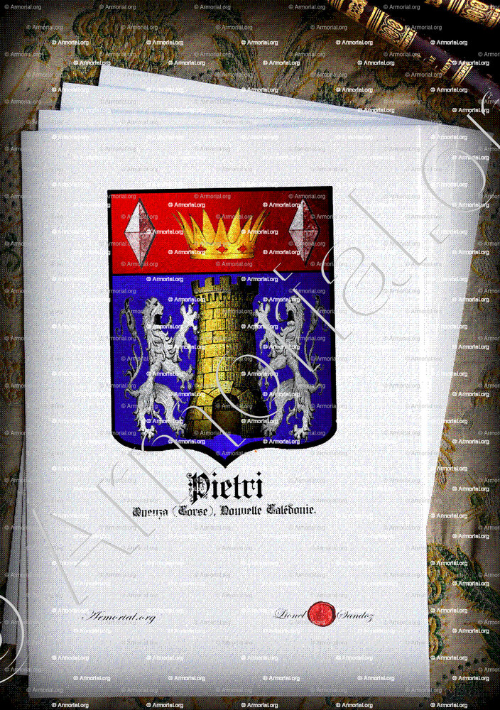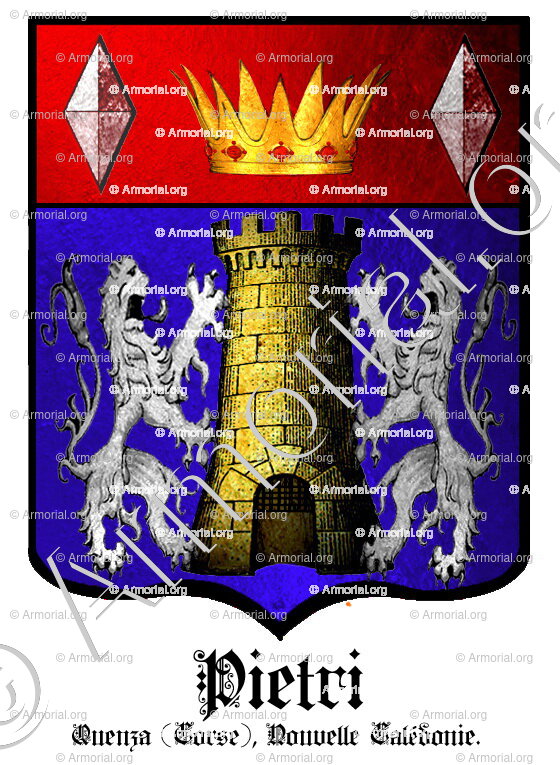 Origine du blason " PIETRI " : " Quenza (Corse), Nouvelle Calédonie., France (i) "