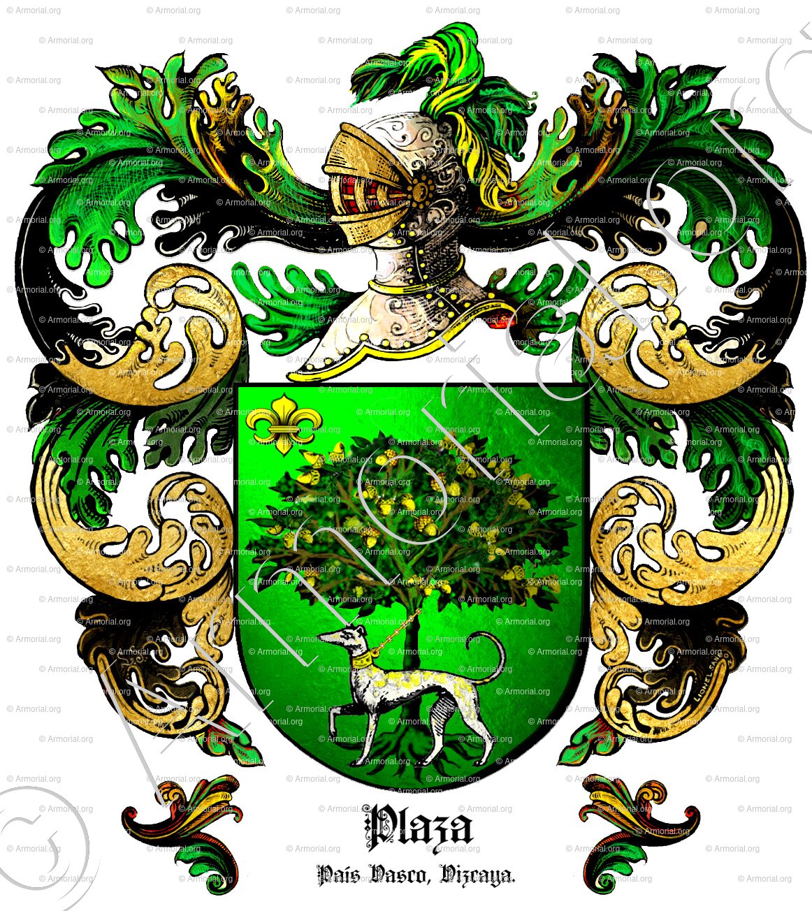 Les armoiries des familles Plaza varient selon les branches, reflétant leur histoire, leurs alliances et leur statut. Voici les principales descriptions héraldiques :