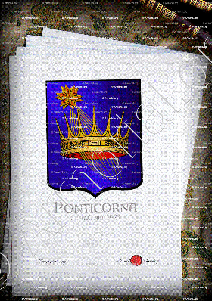 Origine du blason " PONTICORONA " : " Cefalù nel 1423. Sicilia., Italia (i) "