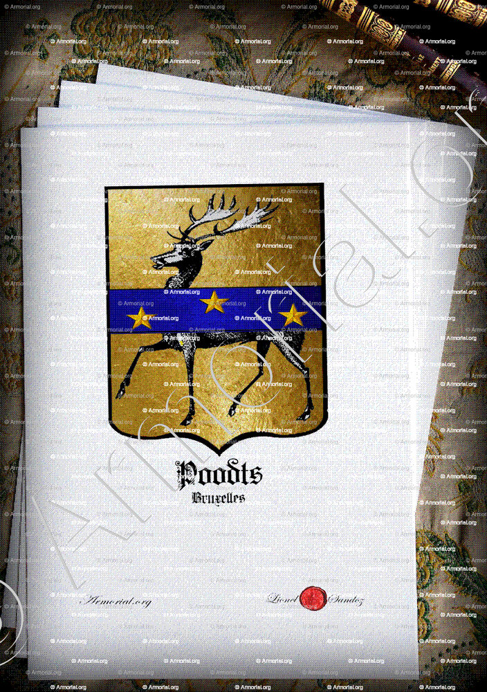 Origine du blason " POODTS " : " Bruxelles, Belgique (i) "