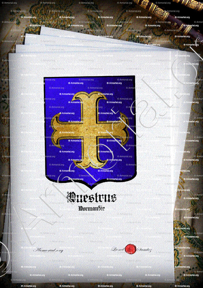 Origine du blason " QUESTRUS " : " Normandie, France (i) "