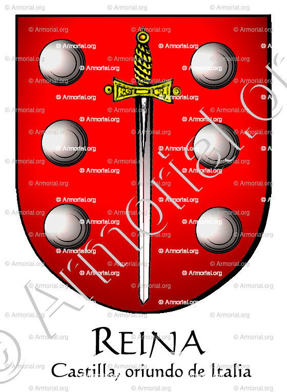 Origine du blason " REINA " : " Castilla, oriundo de Italia, España (i) "