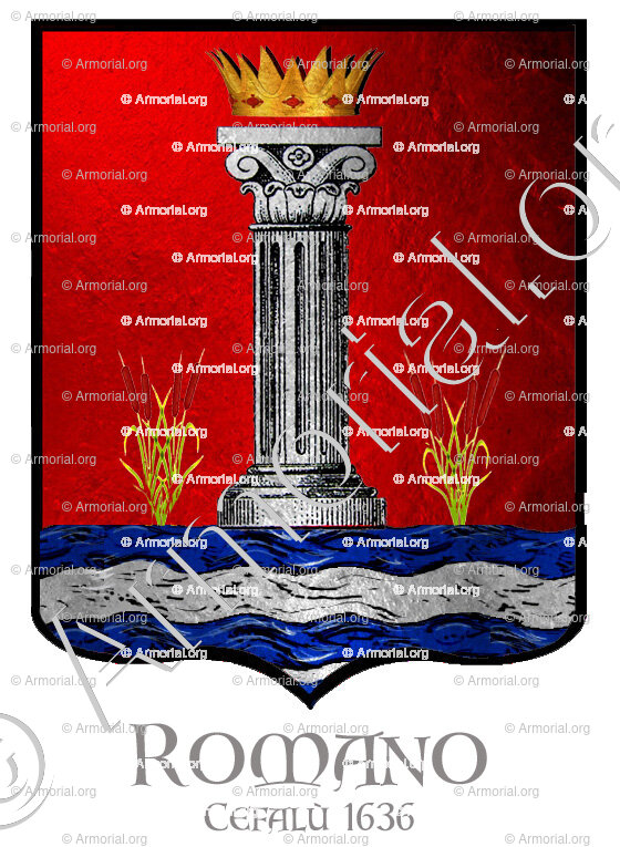 Origine du blason " ROMANO " : " Colonna Romno. Cefalù 1636, Italia (i) "