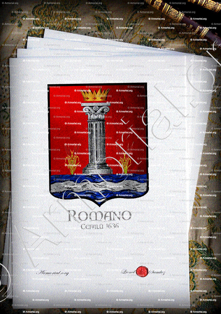 ROMANO est un nom qui s’accompagne d’un blason.
