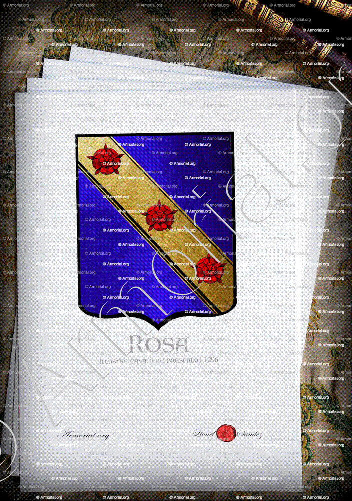Origine du blason " ROSA " : " Illustre cavaliere Bresciano, 1296 in Sicilia., Italia (i) "