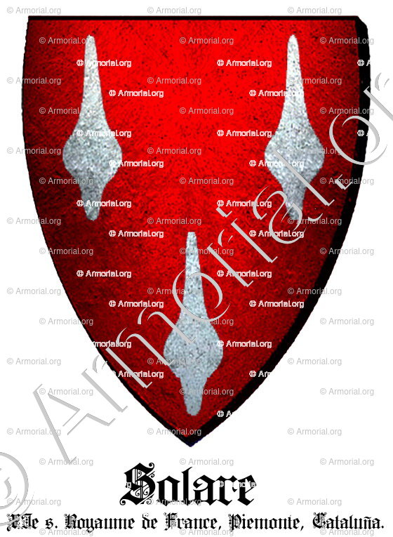 Origine du blason " SOLARE " : " XIe s. Royaume de France, Piemonte, Cataluña., France Italia España (i) "